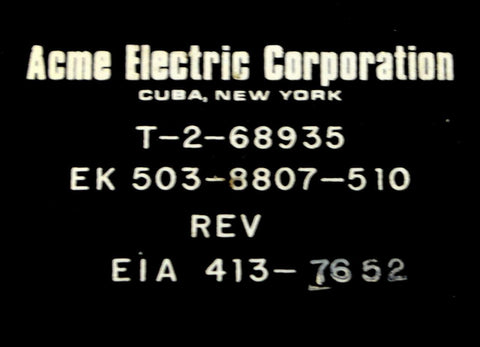 Acme Electric Corp. T-2-68935 EK503-8807-510 Transformer REV. EIA 413-7652