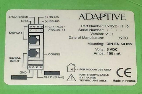 Adaptive Micro Systems E9920-1116 Din Rail Mount CPU Module 5 VDC 150 mA