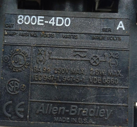 Allen-Bradley 800E-4D0 Series A Illuminated 2-Position Orange Selector Switch