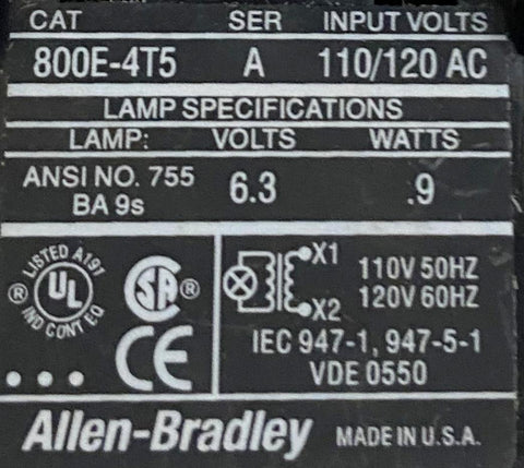 Allen-Bradley 800E-4T5 Push Button Switch Green 110/120 VAC Series A