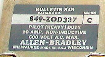 Allen Bradley 849-ZOD337 Time Delay Relay 10 Amp 600 VAC Series C
