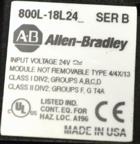 ALLEN BRADLEY AB 800L-18L24 BLUE INDICATOR LIGHT 24 VOLTS SERIES B