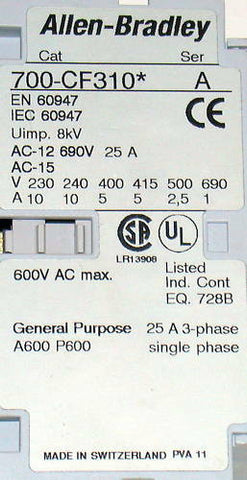 ALLEN BRADLEY CONTROL RELAY 10 AMP MODEL 700CF310