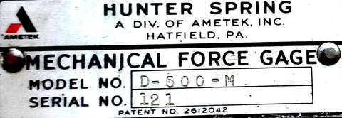Ametek D-500-M Mechanical Force Gage Serial No 121 Patent No 2612042