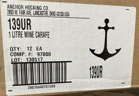 Anchor Hocking 139UR 4-1/8" x 11" Glass Glass Carafe Decanter 1 Liter - 12 Pack