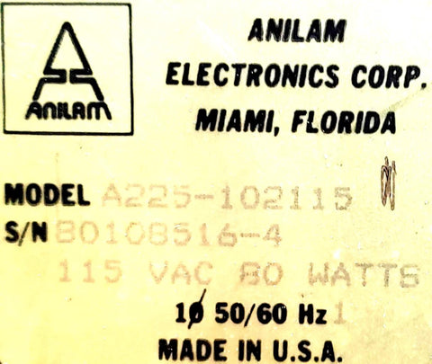 Anilam Electronics A225-102115 Microprocessor Control Unit 115VAC 80W 50/60Hz