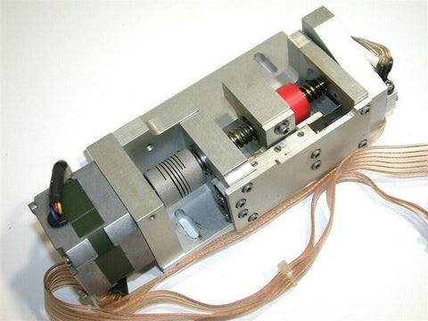 Unit is powered with a Applied Motion Stepper Motor that drives a screw on a Del-Tron slide. Easy to mount and hooks up to a controller for precise movement.