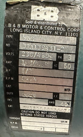 B&B SY121800RBA070 Electric Motor 1/2 HP 1800 RPM 56C 230/460V 3 Phase