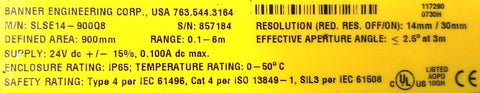 Banner SLSE14-900Q8 EZ-Screen Safety Light Curtain Defined Area 900mm