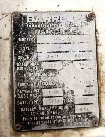 Barrett SG-1-24 Electric Tugger 24 V 750 LBS Max