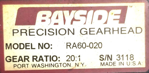 Bayside RA60-020 Precision Gearhead Gear Ratio 20:1