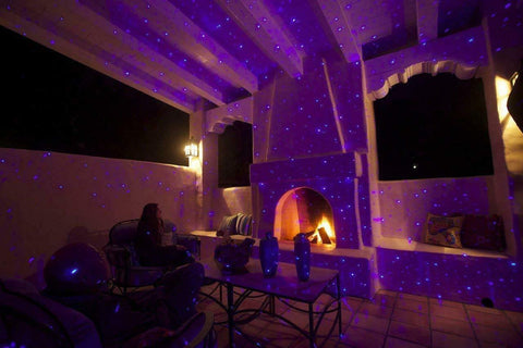 The MOTION Blue is an indoor and outdoor laser projector that creates a moving “firefly effect.”  Energy efficient, weather resistant, and constructed of sturdy ABS, the MOTION covers a space of up to 2500 square feet with thousands of moving green pinpoints of light. The included remote allows you to easily choose between a soft, moving firefly effect or increase the speed for a more festive atmosphere that can bring any party to life.