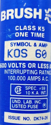 Brush KOS-60 Class K5 One Time Fuse 60A 600V