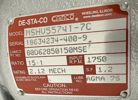 Camco 601RDM0H24-360 Rotary Drive Indexer w/ MSHV55741-7C Reducer 15:1 Ratio