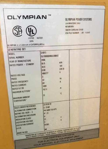 Caterpillar Olympian G40F3 40 kW Generator Natural Gas 50 KVA 480/277V