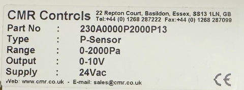 This is a listing for CMR Controls P-Sensor Low Air Pressure Transmitter.