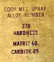 CO-ORDINATED Industries #270 Coor-Met Tungesten Carbide Nickel Base Matrix .62LB