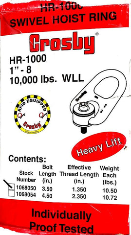 Crosby 7W2N Swivel Hoist Ring 10000lbs 1"-8" HR-1000 F-3 1068050