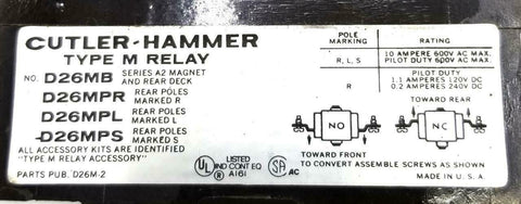 Cutler Hammer D26M-2 Type M Relay