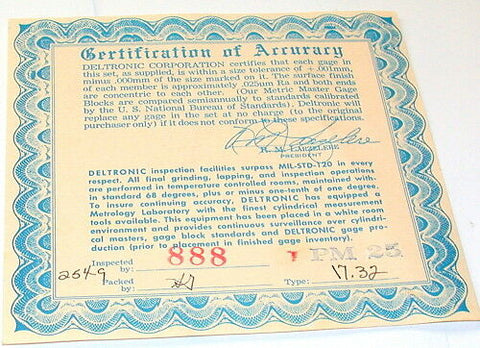DELTRONIC METRIC 25 PIECE STEEL PIN GAGE SET 17.2-17.44