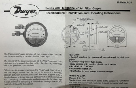 Dwyer A-28 Series 2000 Magnehelic Air Filter Gage Accessory Package