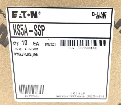 Eaton KS5A-SSP Kwiksplice Aluminum B-Line Cable Tray Splice Plate - Box of (10)