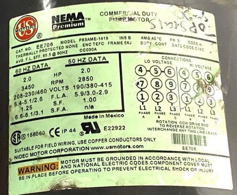 Ebara ACDU70/520T3SCSCEPDM Stainless Centrifugal Pump 2 HP 3450 RPM 230/460V