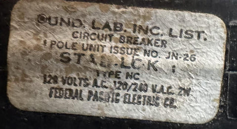 Federal Pacific JN-26 Stab-Lok Circuit Breaker 1-Pole 120/240VAC 20A