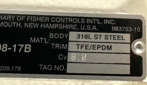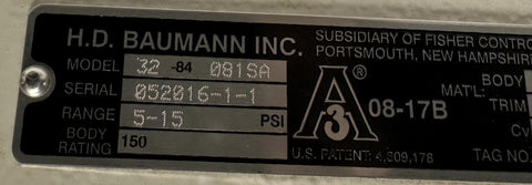 This listing is for a Fisher Controls / H.D. Baumann Inc Sanitary Control Valve.