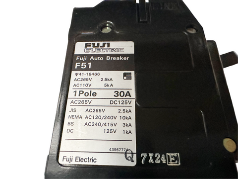 Fuji Electric F51 Auto Circuit Breaker 1 Pole 30A Black