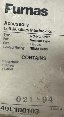 Furnas 49L100103 Left Auxiliary Interlock Kit SPDT Series A Size 4-6 NEMA B600