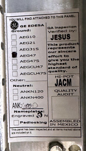 General Electric APNB Panelboard Interior 600A Spectra Series Bolt On