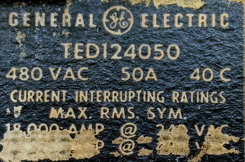 General Electric TED124050 2 Pole Circuit Breaker 50A 480VAC