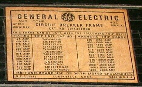 You are Purchasing a General Electric Circuit Breaker. Model : TJK436F000 This Circuit Breaker is in Great Condition and Fully Guaranteed.