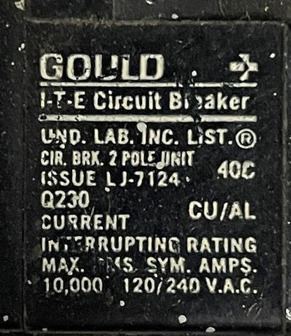 Gould I-T-E Q230 2 Pole Circuit Breaker 30A 120/240V 60HZ Plug-In
