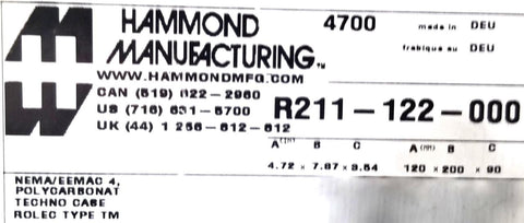 Hammond R211-122-000 Polycorbonate Techno Case NEMA 4