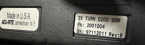 DRO: Acu-Rite 2x Turn D200 D0M, P/N: 2001004, Serial: 97112011 Rev B