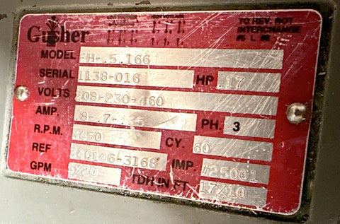 Coolant Pump: Gusher .17 HP (5/20 GPM)