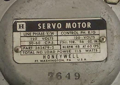 Honeywell 362479-2 Servo Motor 120 VAC 5/60 Hz 11.5 Watts