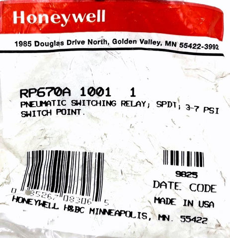 Honeywell RP670A 1001 1 Pneumatic Switching Relay SPDT 3-7 PSI Switch Point