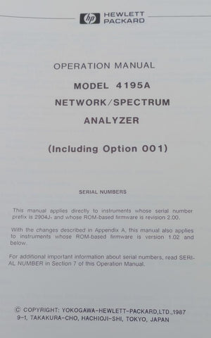 This is a fixed listing for a HP Network / Spectrum Analyzer Manual Model: 4195A Specifications: Brand: HP Type: Operation Manual For HP 4195A Network / Spectrum Analyzer The item is exactly as pictured.