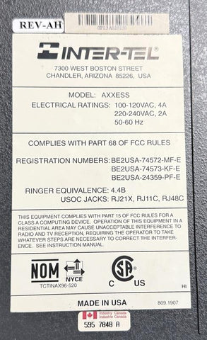 Inter-Tel AXXESS PBX Cabinet W/ CPU64, LSC, DKSC Cards & Power Supply