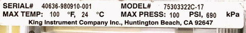 King Instrument 75303322C-17 Flow Meter 100 PSI 100°F 690 kPa