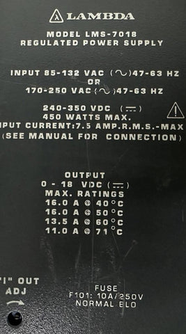 Lambda LMS-7018 Regulated Power Supply 0-18 VDC 16 AMP