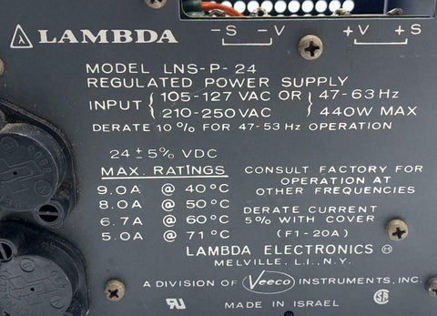 Lambda LNS-P-24 Regulated Power Supply 24 VDC @ 9 Amps