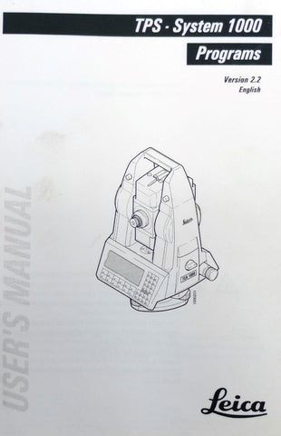 This is a fixed listing for a Leica User's Manual Model: TPS-System 1000 V. 2.2 Specifications: Brand: Leica Type: User's Manual For Leica TPS-System 1000 Programs The item is exactly as pictured.