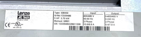 Lenze AC Tech SM450 Variable Speed Drive 5 HP 3.7 kW 400-480V 3 Phase