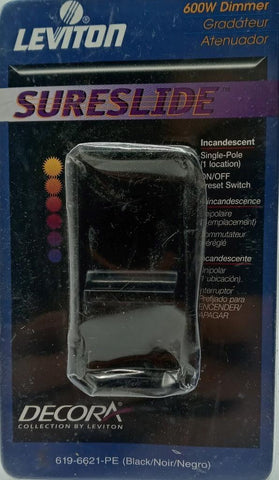 Leviton 619-6621-PE Sureslide 600W Dimmer Single Pole On/Off Switch - Black