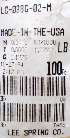 Lot of (10) Lee Spring Co. LC-038G-02-M Compression Springs