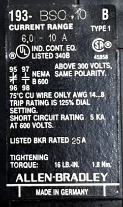 W/ 193-BSC10 Overload Relay